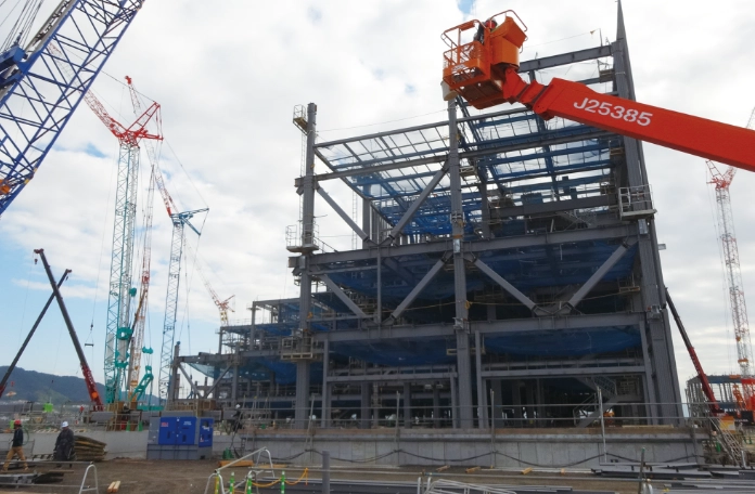 高層建築やスタジアムの鉄骨構造物を加工して組み立てる仕事です