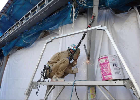 高層建築やスタジアムの鉄骨構造物を組み立てる仕事です。